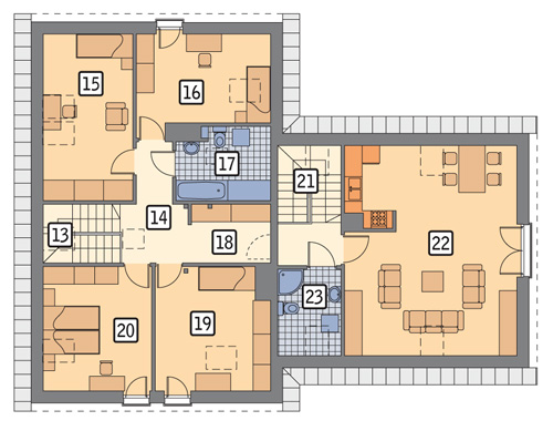 W ramach indywidalnej adaptacji możliwość przeznaczenia mniejszego lokalu na poddaszu na część usługową, m.in. na: pracownię, biuro, gabinet, punkt usługowy.