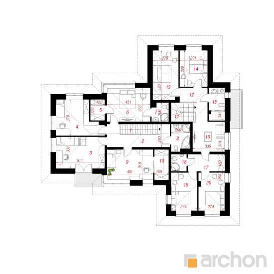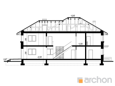 | dach | czterospadowy, nachylenie 30 st (67%), więźba drewniana, dachówka ceramiczna | |